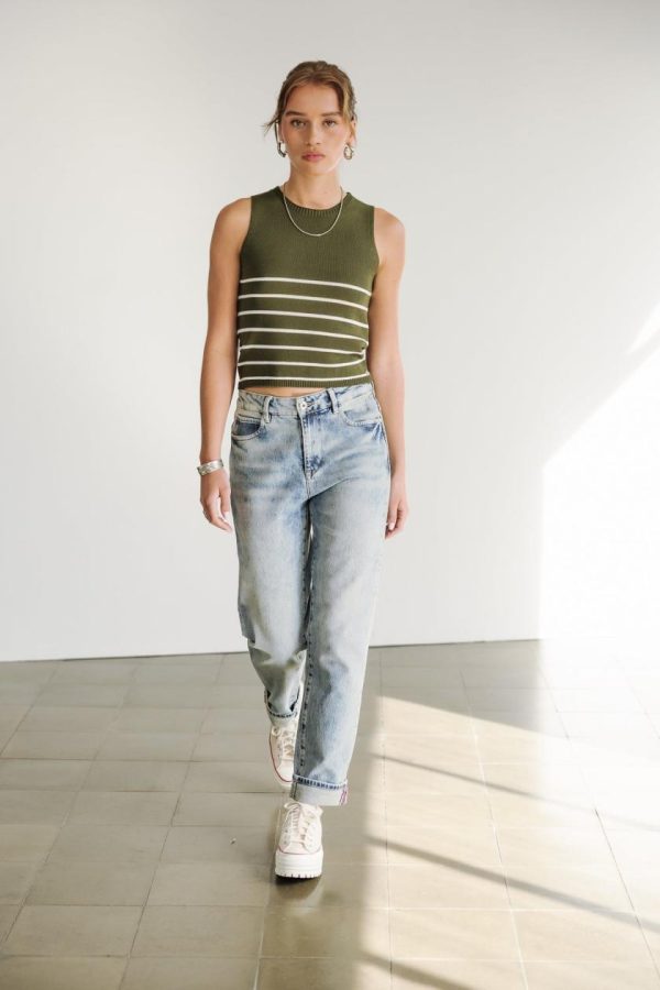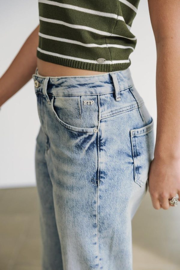 • Coupe mom: ample sur les hanches et sur le haut des cuisses et qui se resserre en bas