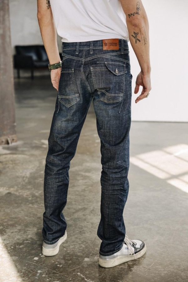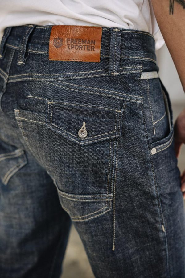 • Petit rabat de poche sur poches dos, matière stretch, confort