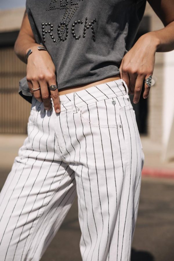 • Matière baby twill, stretch, à rayures irrégulières anthracite
