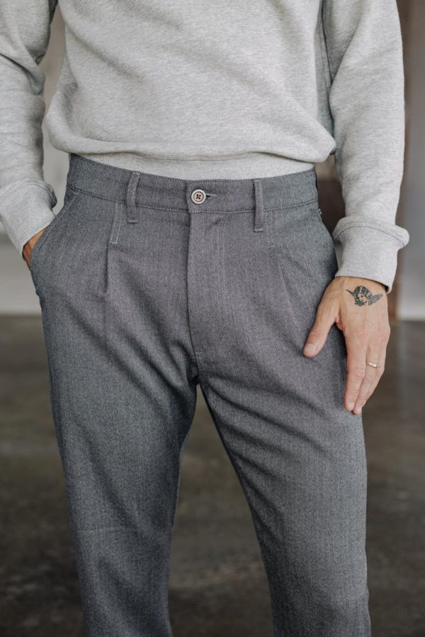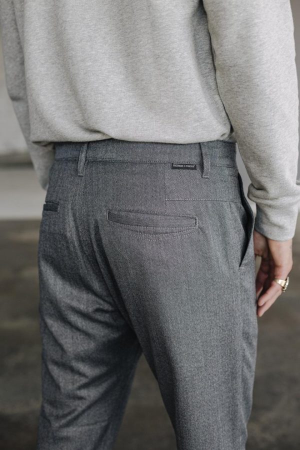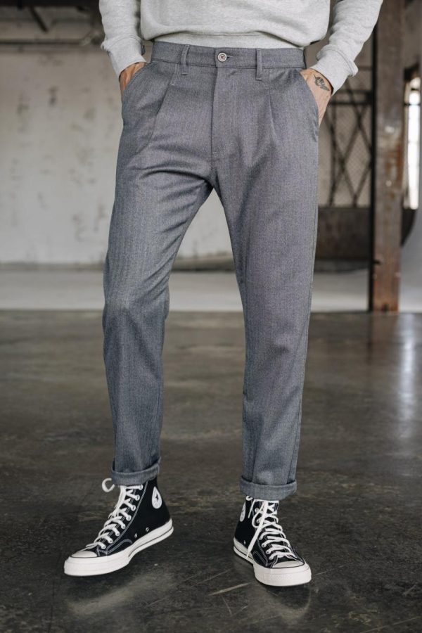 • Pantalon chino, coupe tapered (ample aux hanches et cuisses, puis ajustée/slim en bas de jambe)