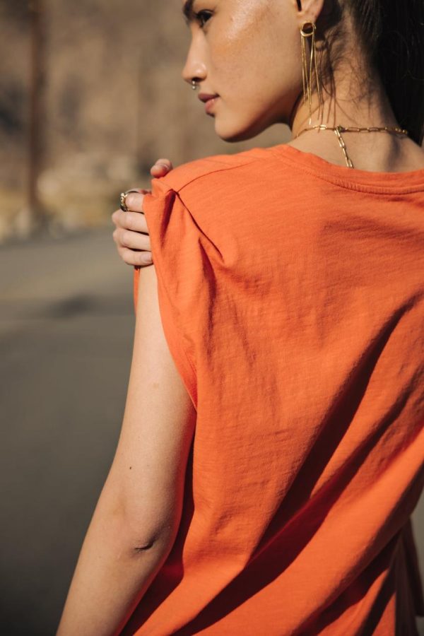 • T-shirt col rond sans manches dans un tissu en jersey de poids moyen en coton flammé doux et uni