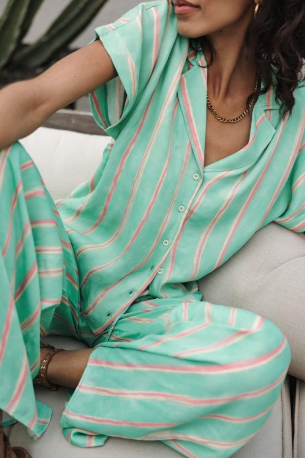 Tops & Chemises Femme | Freeman T. Porter Chemise Fluide à Rayures Wina Crafty Stripe, Deep Mint