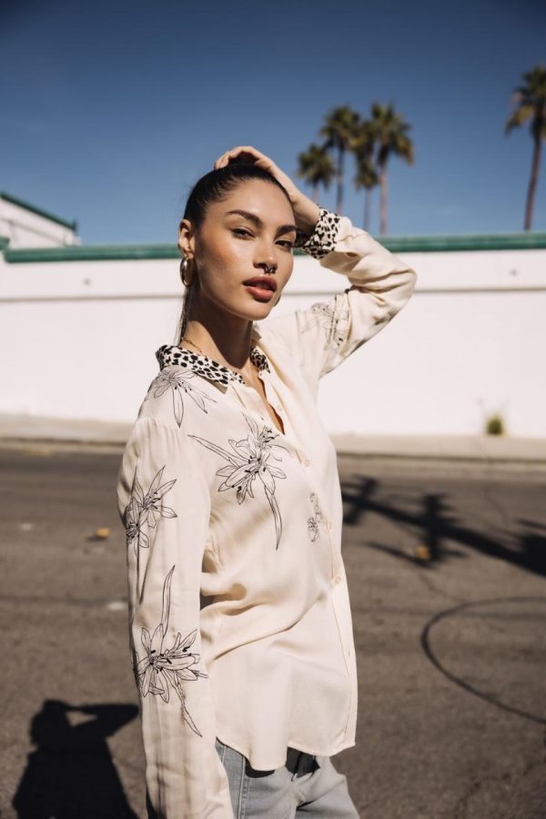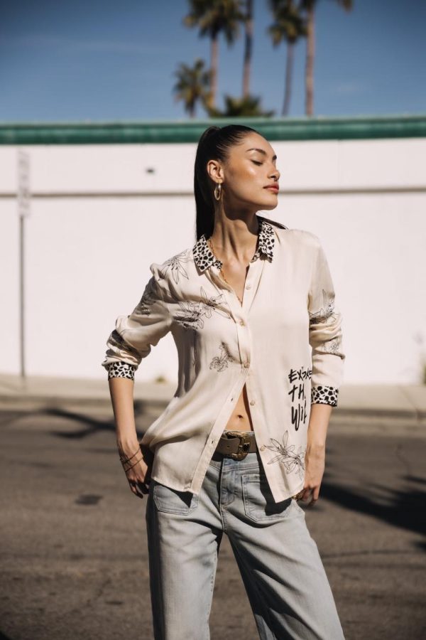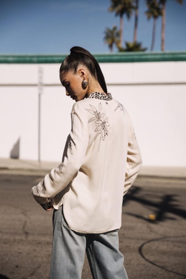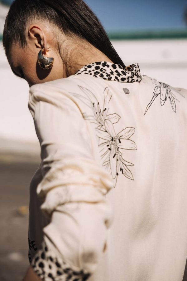 • Motifs insectes and fleurs imprimés