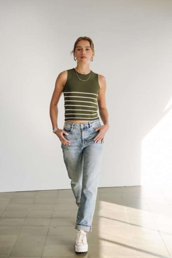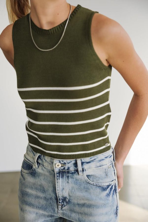 • Top marinière court en maille légère point jersey sans manches