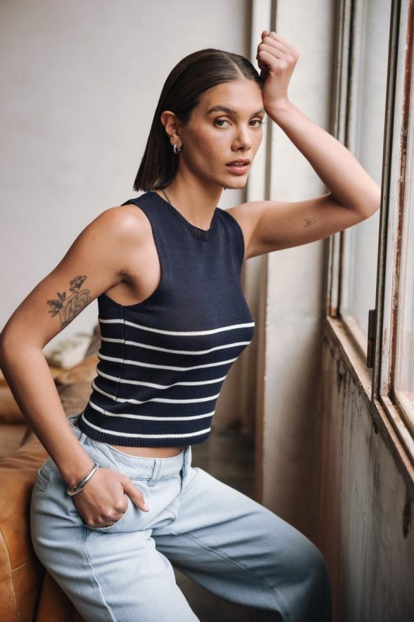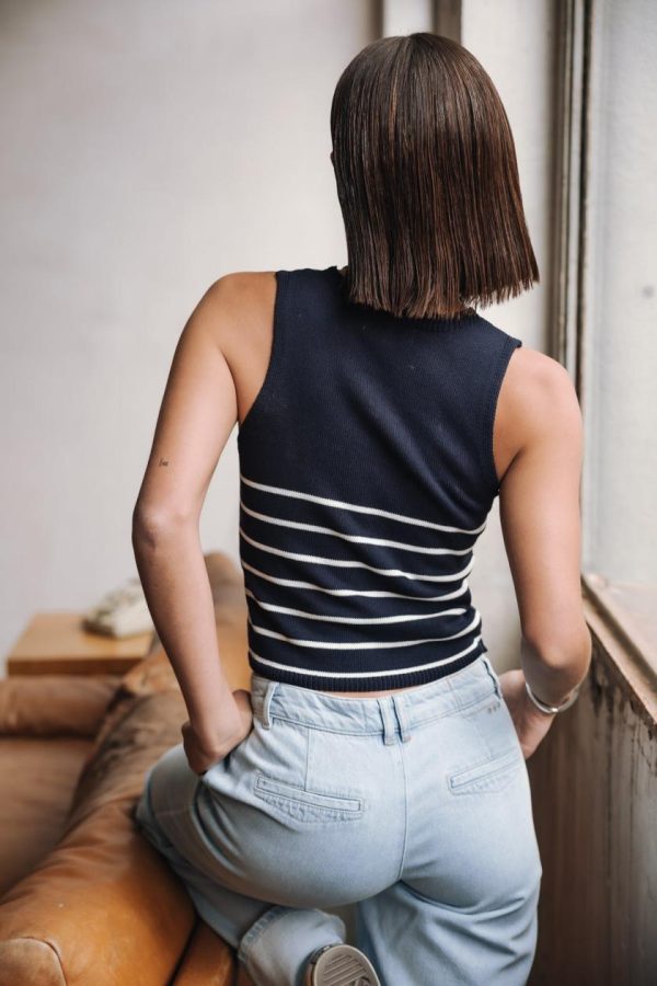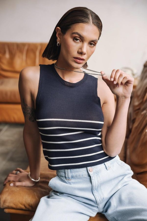 Tops & Chemises Femme | Freeman T. Porter Top En Maille Dori Stripes Cropped, Dark Navy
